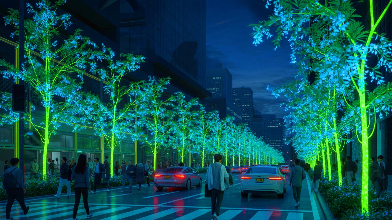 Ästhetisch wirken die Pflanzen wie Poesie in Asphalt und Beton. Plätze verwandeln sich in schimmernde Gärten, und Wege in sanft beleuchtete Korridore. Das Narrativ „Natur leuchtet selbst“ ist kommunikativ mächtig.