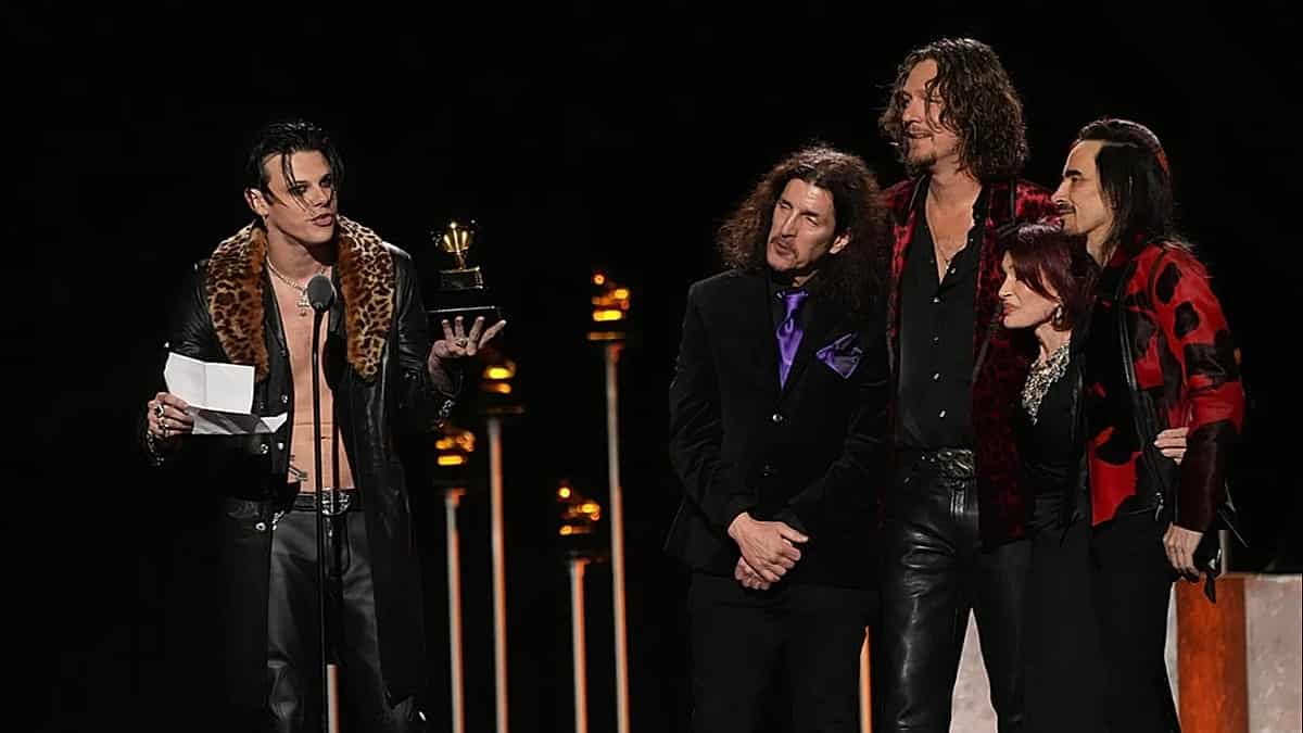 Die Grammy-Gewinner traten auf die Bühne, um die Auszeichnung entgegenzunehmen, zusammen mit Sharon Osbourne, Ozzy Osbournes Witwe, die sichtlich bewegt war. Yungblud hielt die Dankesrede, während Bettencourt später Journalisten im für Interviews mit den Gewinnern vorgesehenen Raum befragte.